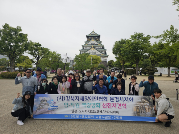 (사)경북지체장애인협회 문경시지회는 지난 4월 22일(토)부터 24일(월)까지 2박3일 일정으로 임·직원 등 30여 명이 일본(오사카, 아라시야마, 교토, 고베)으로 역량강화 및 선진지견학을 다녀왔다.