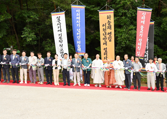 문경시는 지난 8일 하늘재 정상에서 하늘재 옛길 복원사업 준공식을 가졌다. 이날 준공식에는 신현국 문경시장을 비롯해 임이자 국회의원, 황재용 문경시의회 의장, 박영서 경북도의회 수석부의장, 도의원, 시의원, 지역주민 등 200여 명이 참석했다.