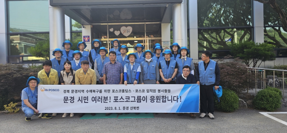 8월 1일 포스코홀딩스 임직원 30여명은 산북면 내화리 집중호우로 인하여 침수주택 가정을 찾아 봉사활동을 펼쳤다.