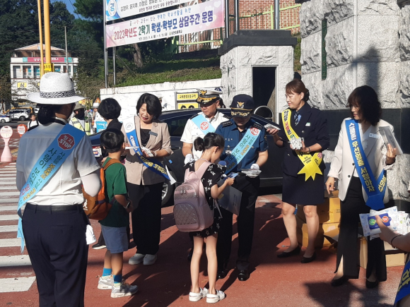 문경교육지원청(교육장 이경옥) 학교지원센터는 9월 6일 모전초등학교 앞 어린이보호구역에서 등교하는 학생들을 안전하게 맞이하고 교통안전에 대한 경각심을 제고하기 위해 교통안전 캠페인을 실시했다.