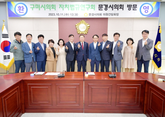 구미시의회 자치법규연구회 이상호 대표의원을 비롯한 자치법규연구회 소속 의원들이 10월 11일(수) 문경시의회를 찾았다.