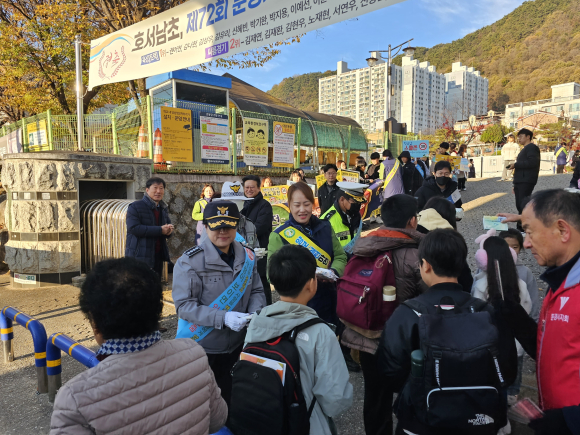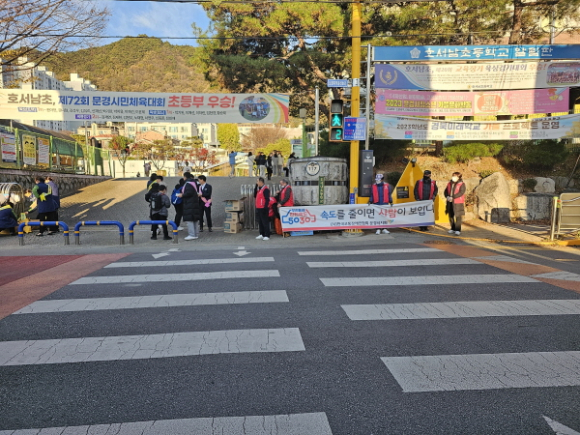 | 11월 14일(화) 호서남초등학교 등교 시간(07:50~08:40)을 활용하여 학교 정문에서 호서남초 교직원, 전교학생회, 문경시청 교통행정과, 문경경찰서, 녹색어머니 문경연합회, 사랑실은 교통봉사대 문경지대, 한국교통안전공단, 한국교통장애인협회 문경시지회 등 지역사회 여러 기관이 참여 ‘스쿨존 교통안전 캠페인’을 실시하였다.