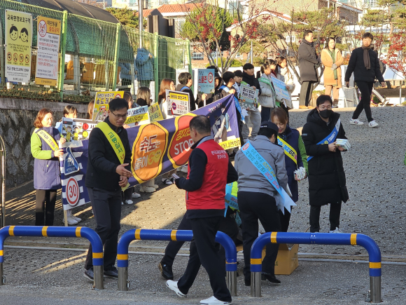 이날 캠페인에는 '내가 안전하려면 내가 먼저 지키자 내 교통질서!’, ‘안전은 지키GO, 속도는 줄이GO, 정지선엔 STOP’, ‘속도를 줄이면 사람이 보입니다’, ‘스쿨존 안전수칙, 우리 모두가 지켜요’ 등의 홍보문구가 적힌 학용품을 나누어 주며 시작한 캠페인은 어린이 안전보행 지도, 어린이 보호구역 내 주정차 금지, 안전속도 준수 등 학생 및 지역 시민들의 교통질서 의식을 고취시키며 안전한 등굣길을 응원했다.