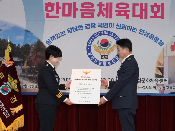 김정란 문경경찰서장은 정형섭 문경자율방범 연합대장에게 자율방범 설치 운영에 관한 법률에 의한 법정단체 출범 설치 신고서를 전달하였며 이는 문경시 방범에 기여할 수 있는 초석이 될 것이라며, 문경시자율방범연합회 한마음 체육대회를 통해 협력과 협동을 다지고 문경시 방범을 수호하는 단체가 되기를 기대한다고 말했다. |