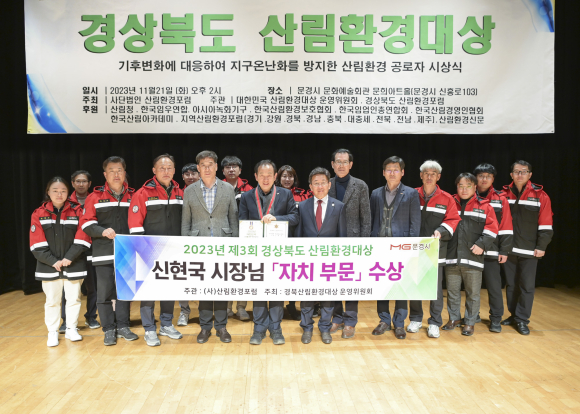 신현국 문경시장은 21일 산림의 환경기능을 증진시켜 기후변화에 대응하고 공익적 기능에 기여한 공로자를 선정하는 '2023년 제3회 경상북도 산림환경대상' 자치부문을 수상했다.