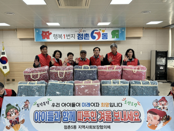 점촌5동 지역사회보장협의체(공공위원장 조성영, 민간위원장 박병희)는 11월 21일 (화) 관내 다자녀 양육 가구에 동절기 방한용품을 전달했다.