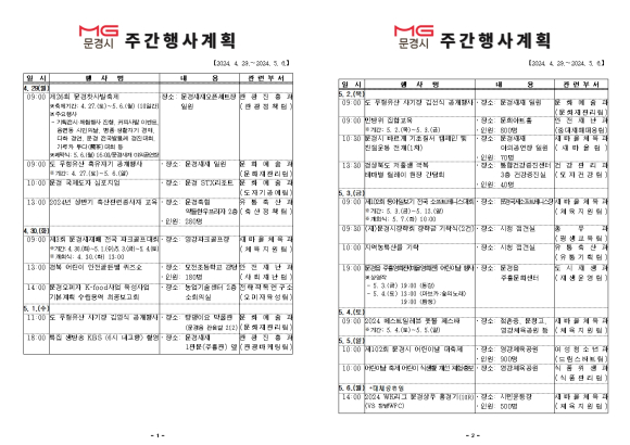 문경시 주간행사계획(2024.04.29~5.6.)