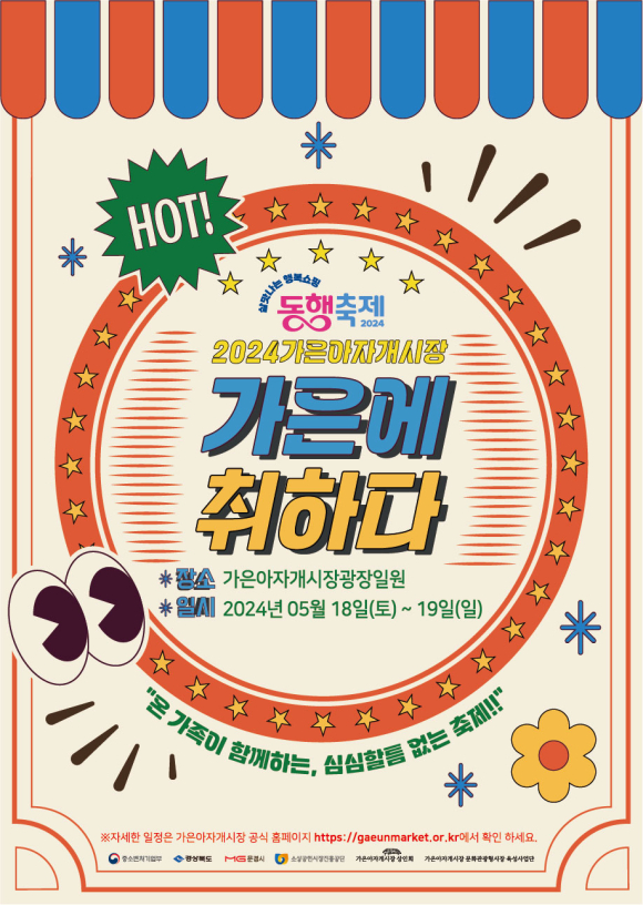 문화관광형시장육성사업을 추진 중인 문경시 가은아자개시장은 중소벤처기업부와 경상북도, 문경시, 소상공인시장진흥공단의 후원으로 2024 동행축제와 함께하는 ‘가은에 취하다’축제를 오는 5월 18과 19일 이틀간에 걸쳐 가은아자개시장 장터 광장 일원에서 개최한다.