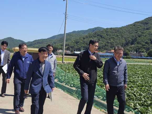 한훈 농림축산식품부 차관이 4일 문경시 농암면 갈동리에 위치한 배추 생산 현장을 찾아 봄배추 작황을 점검하고 재배농가 및 유관기관의 의견을 청취하였다. |