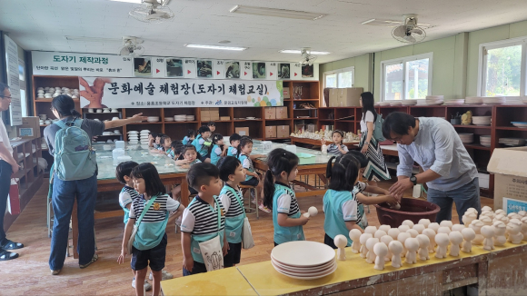 문경교육지원청(이경옥 교육장)은 18일 오전 9시부터 용흥초에서 모전초등학교 병설유치원생을 대상으로 도자기만들기 체험활동을 실시하였다.