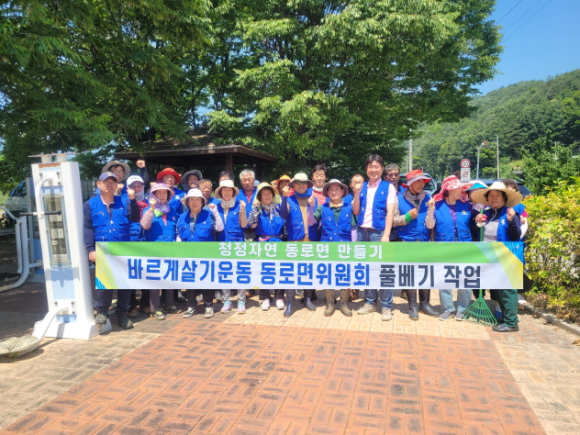바르게살기운동 동로면위원회(위원장 박종수)는 6월 18일(화), 여름 휴가철을 앞두고 깨끗한 동로면을 만들기 위해 공동 풀베기 작업을 실시했다.