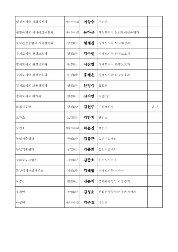문경시청 인사이동조서 승진 54명(2024.07.08字)