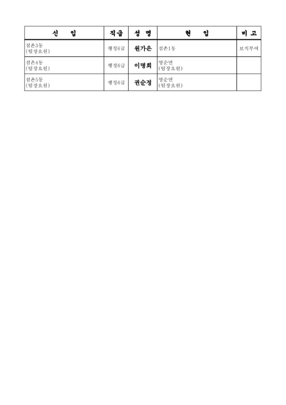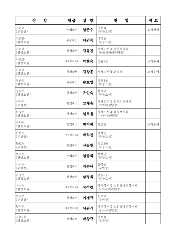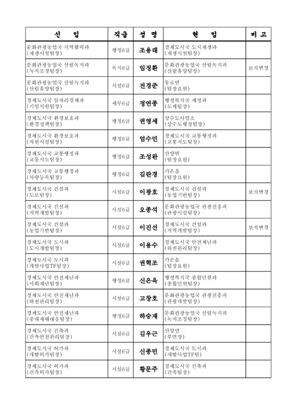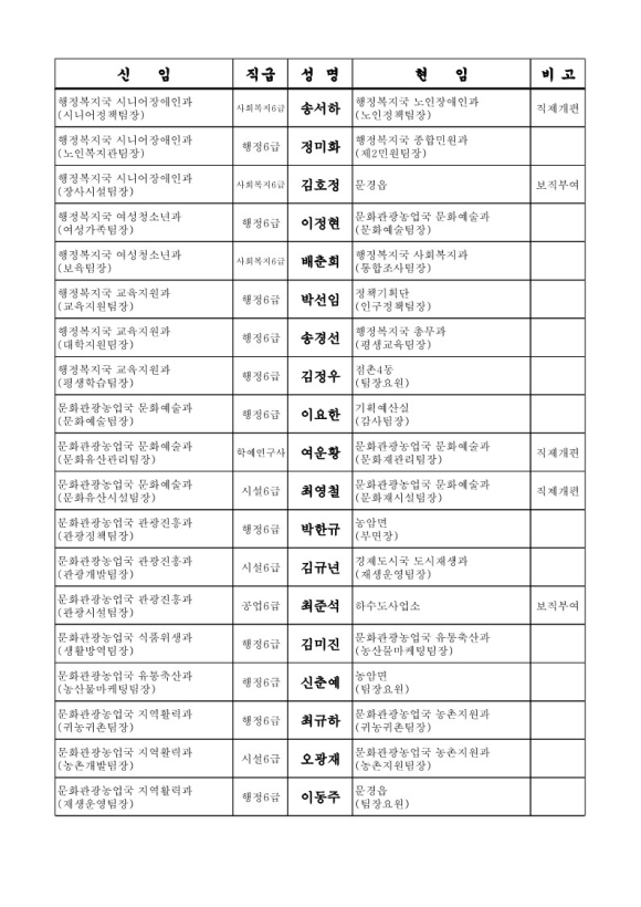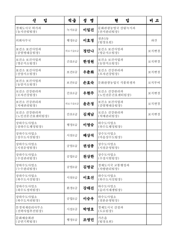 문경시청 인사이동조서 6급 전보 95명(2024.07.08字)
