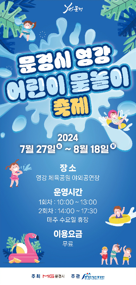 문경시는 오는 7월 27일(토)부터 8월 18일(일)까지 영강체육공원 야외공연장에서 「2024 문경시 영강어린이물놀이 축제」를 개최한다.