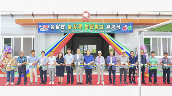 농암면 농기계보관창고와 골프연습장 준공식이 25일 농암면행정복지센터 뒤 현장에서 개최되었다.