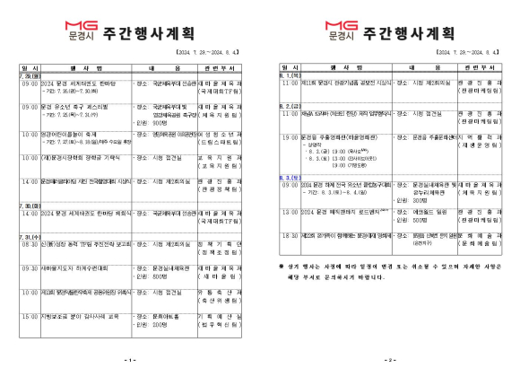 문경시주간행사계획[7.29~8.4]
