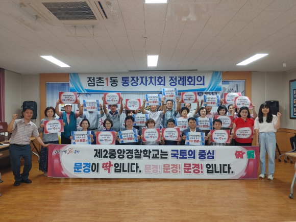 문경시 점촌1동은 12일, 통장자치회 월례 회의에서 제2중앙경찰학교 유치 기원 캠페인을 벌였다.