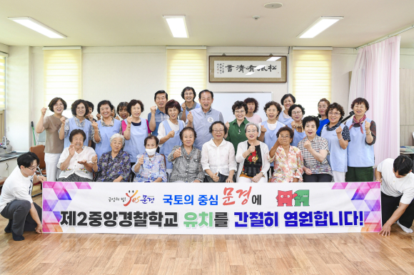 이날 봉사에서는 문경에 제2중앙경찰학교 유치를 봉사자와 주민 모두가 함께 염원하는 다짐의 시간을 가졌다.