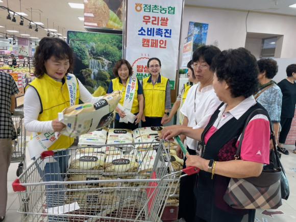 점촌농협(조합장 김욱현)은 22일, 범 농협 쌀 소비촉진의 일환으로 고향주부모임(회장 류시자) 회원 및 임직원이 참여한 가운데 점촌농협 하나로마트에서 우리 쌀 판매 활성화를 위한 캠페인을 실시하였다.