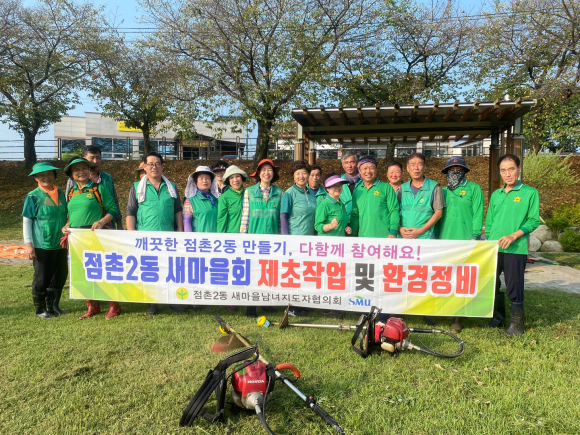 점촌2동 새마을회(협의회장 한주열, 부녀회장 권점분)는 지난 25일(일) 오전 5시부터 회원 20여 명이 모인 가운데, 추석맞이 영신숲 공원 및 주차장 제초작업과 환경정비를 실시했다.