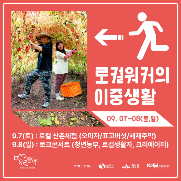 오는 9월7일(토) ~ 9월 8일(일) 전국 청년들이 문경을 경험하고 탐색하는「K-Local 100 경[북]로[컬]탐색」이 문경읍, 가은읍, 산양면, 원도심 일원에서 개최된다.