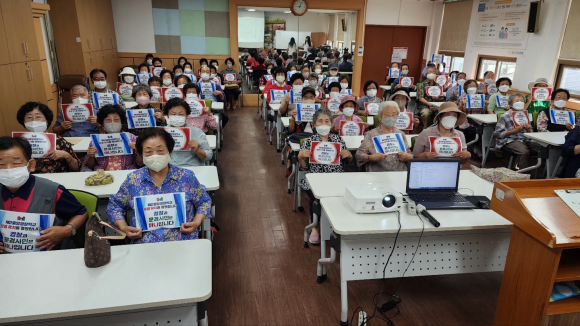 문경시니어클럽(관장 옥정수)에서는 9일 노인일자리 및 사회활동 지원사업 참여자 교육에 앞서, 참여 어르신들과 함께‘제2중앙경찰학교’문경 유치에 대한 염원을 담은 퍼포먼스를 펼쳤다고 밝혔다.