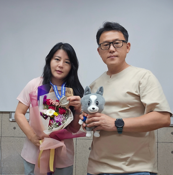 | ↑↑ (왼쪽) 은상 수상자 김정미 (오른쪽) 문경시농아인지회장 김만수 |