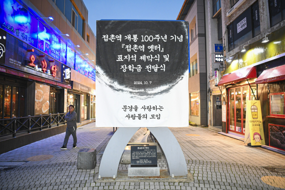 문경시 문화의 거리에 점촌역 개통 100주년을 기념하고 최초 역터를 알리는 표지석이 세워졌다. 지난 10월 7일 월요일 문경시장, 도․시의원, 기차역장, 문경을 사랑하는 사람들의 모임(회장 박시복, 회원 41명, 이하 ‘문사회’라 칭함), 아리솔 지역아동센터 학생 및 교사 등 80여명이 참석한 가운데 제막식을 가졌다. 이날 문사회에서는 지역 인재 양성 등 뜻있는 일에 사용하도록 장학금 3백만원을 기탁하는 전달식도 가졌다.