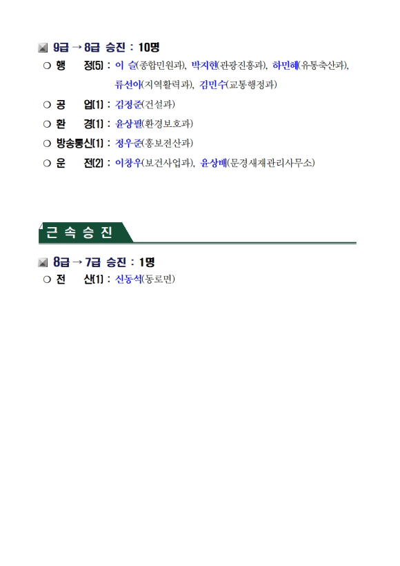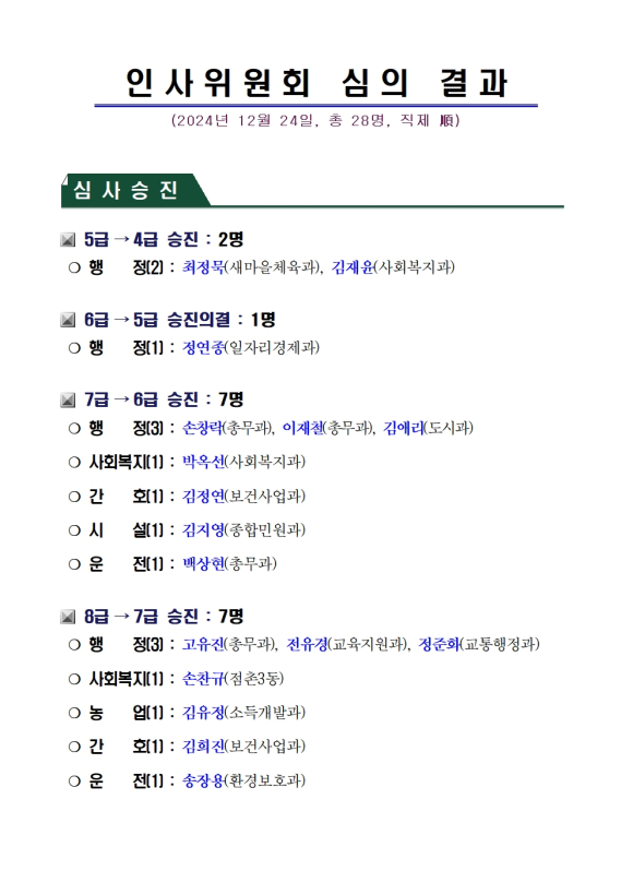 문경시청 인사위원회 심의결과(2024.12.24 字)