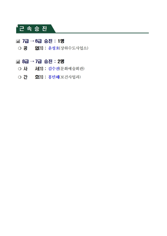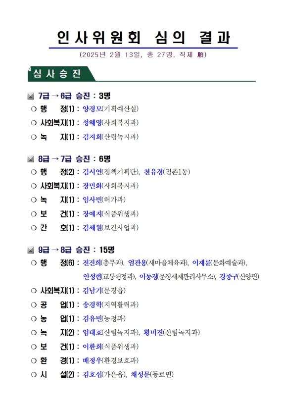 문경시청, 인사위원회 심의 결과(2025년 2월 13일, 총 27명, 직제 順)