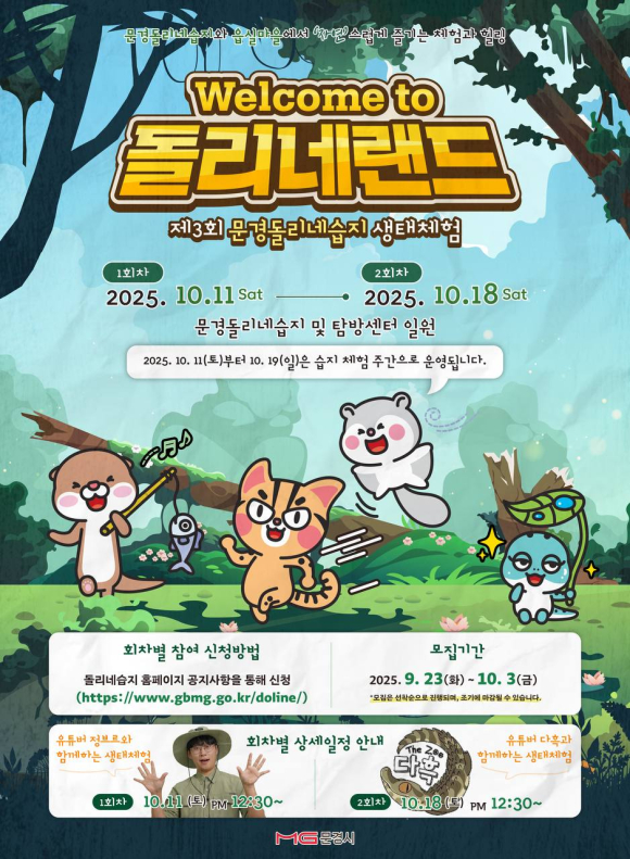 문경시는 지난 11일 문경돌리네습지 및 탐방센터 일원에서 200여 명의 참가자를 대상으로 제3회 생태체험 ‘웰컴 투 돌리네랜드’를 개최했다.