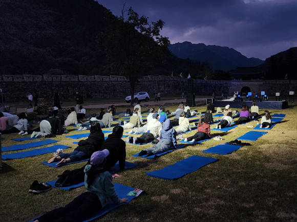 3회차 마지막 여정은 달빛 아래 문경새재 옛길을 걷는 달빛 트레킹과 제1관문 드넓은 잔디밭에 누워 즐기는 달빛 힐링요가 체험으로 고즈넉한 새재의 정취를 온전히 느끼고, 뒤이어 가야금과 해금 공연이 어우러지며 깊어가는 가을밤 문경새재는 음악과 달빛, 그리고 관광객들의 웃음으로 가득 채워지며, 마지막으로 달빛 포토존에서 찍은 단체 사진은 여행의 특별한 추억을 남겼다.