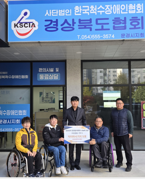 삼성스토어 문경본점(대표 김종원)에서 지난 11월 3일(월) (사)한국척수장애인협회 경상북도협회 문경시지회에 척추안마기 5대(1,750,000원 상당)을 기탁했다.