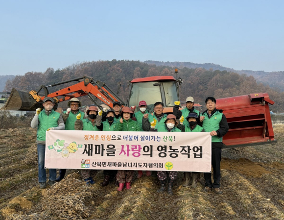 산북면새마을회(협의회장 임영기, 부녀회장 백춘자)는 지난 24일 회원 등 20여 명이 참여한 가운데 새마을 영농작업장(대상리 128 외 2개소)에서 사랑의 콩 수확 작업을 했다.
