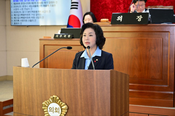 이정걸 의장님과 동료 의원님! 그리고 제2의 문경도약을 위해 노력하시는 신현국 시장님과 문경시 1천여 공직자 여러분! 비례대표 김영숙 의원입니다.