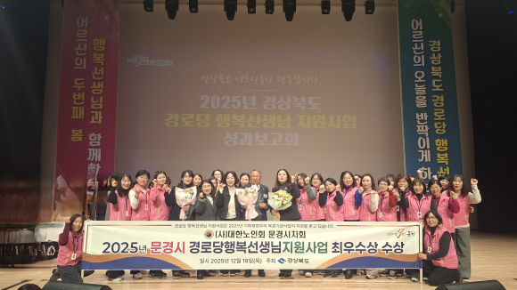(사)대한노인회 문경시지회(지회장 박경규)는 2025년 경로당행복선생님지원사업 성과보고회에서 수행기관 최우수상과 경로당행복선생님 유공 부문에서 김엄미 경로당행복선생님이 도지사표창을 수상했다.