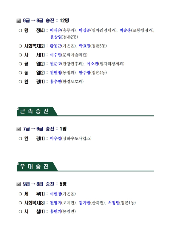 문경시 인사위원회 심의 결과(2025년 12월 23일, 총 37명, 직제 順)