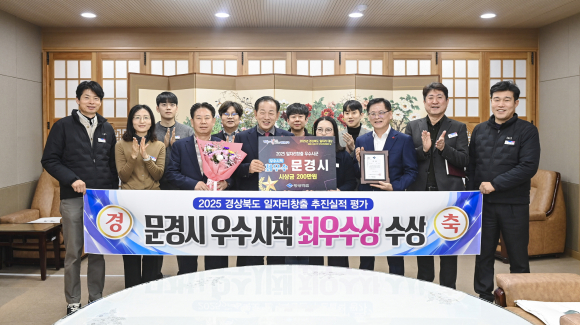 문경시는 23일 안동 그랜드호텔에서 열린 ‘2025년 경상북도 일자리창출 추진실적 평가’에서 작년에 이어 2년 연속 우수시책 부문 최우수상을 수상하는 쾌거를 올렸다.