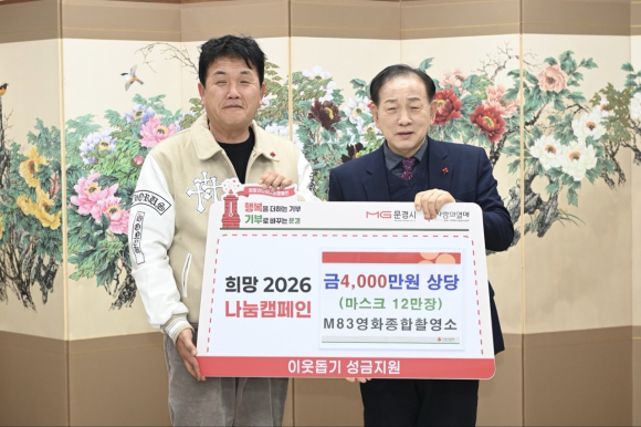 M83영화종합촬영소(대표 문루도)는 지난 15일 지역사회 감염병 예방과 취약계층 보호를 위해 마스크 12만 장(4,000만 원 상당)을 문경시에 기탁했다.