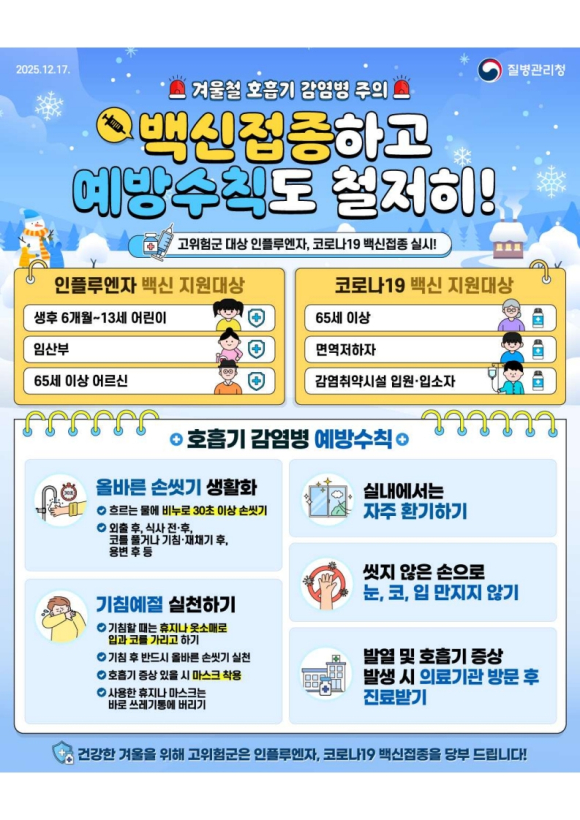 인플루엔자 등 호흡기 감염병 예방수칙 준수 당부