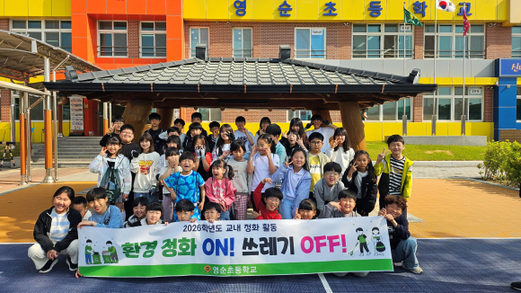영순초등학교(교장 최인규)는 2026년 4월 27일(월) 전교생과 교직원이 함께 참여한 가운데 교내 및 학교 주변 환경정화 활동을 실시하였다.